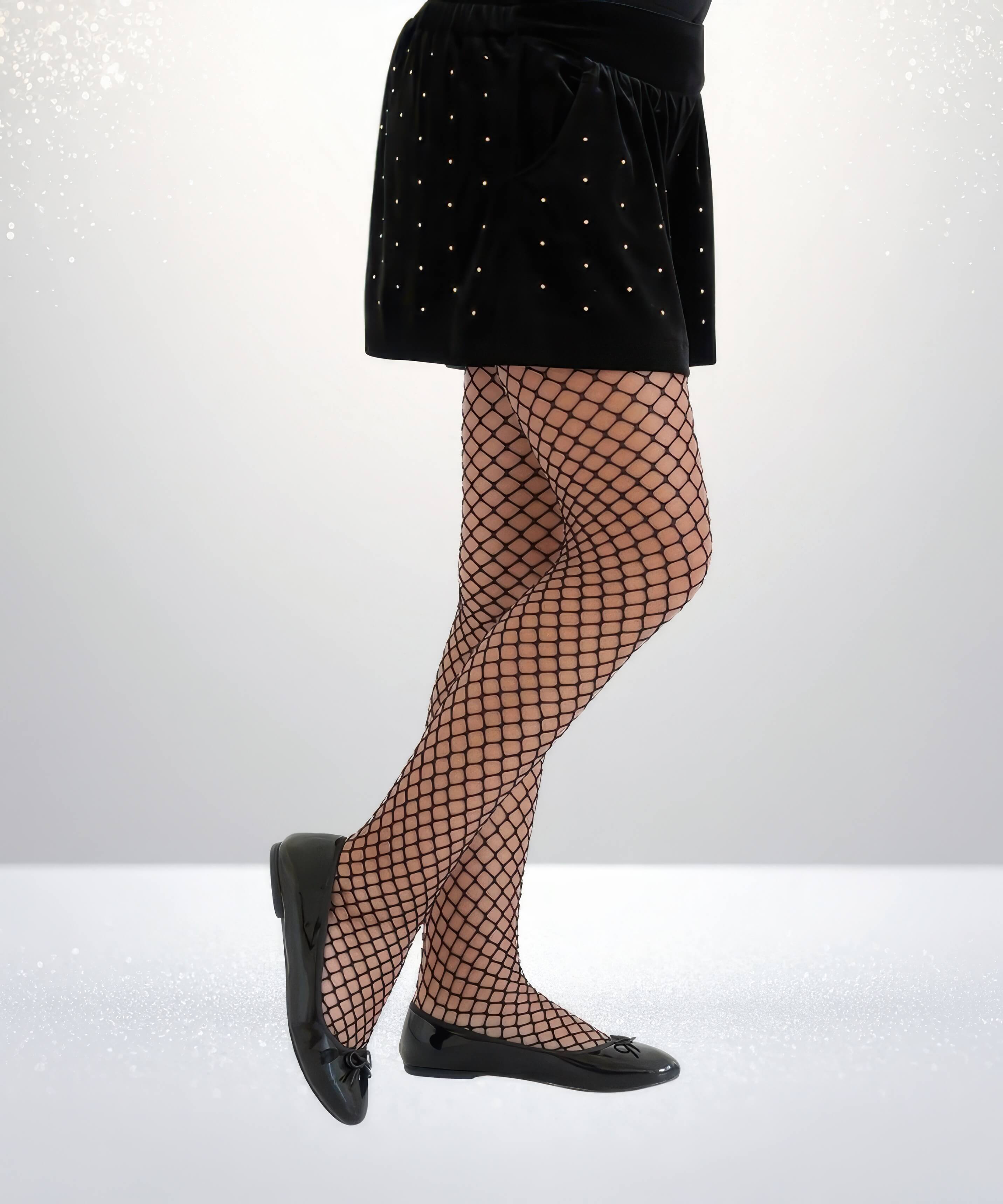 Şık file dokusu, yumuşak yapısı ve esnek formuyla hem günlük kombinlere hem özel günlere uyum sağlayan kız çocuk külotlu çorabı.
