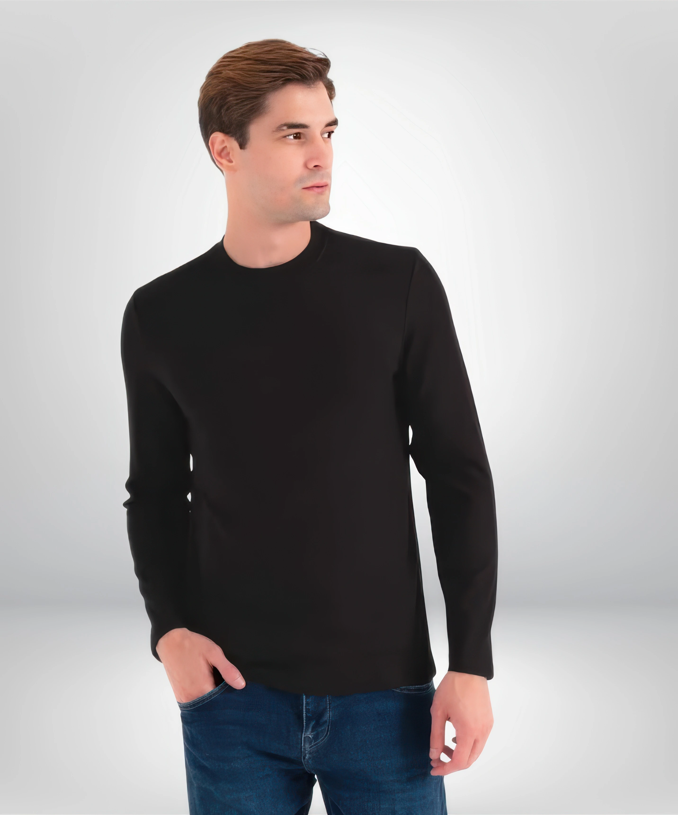 Kapalı yaka detayıyla boyun bölgenizi koruyan, pamuklu ribana kumaşlı erkek uzun kol badi.