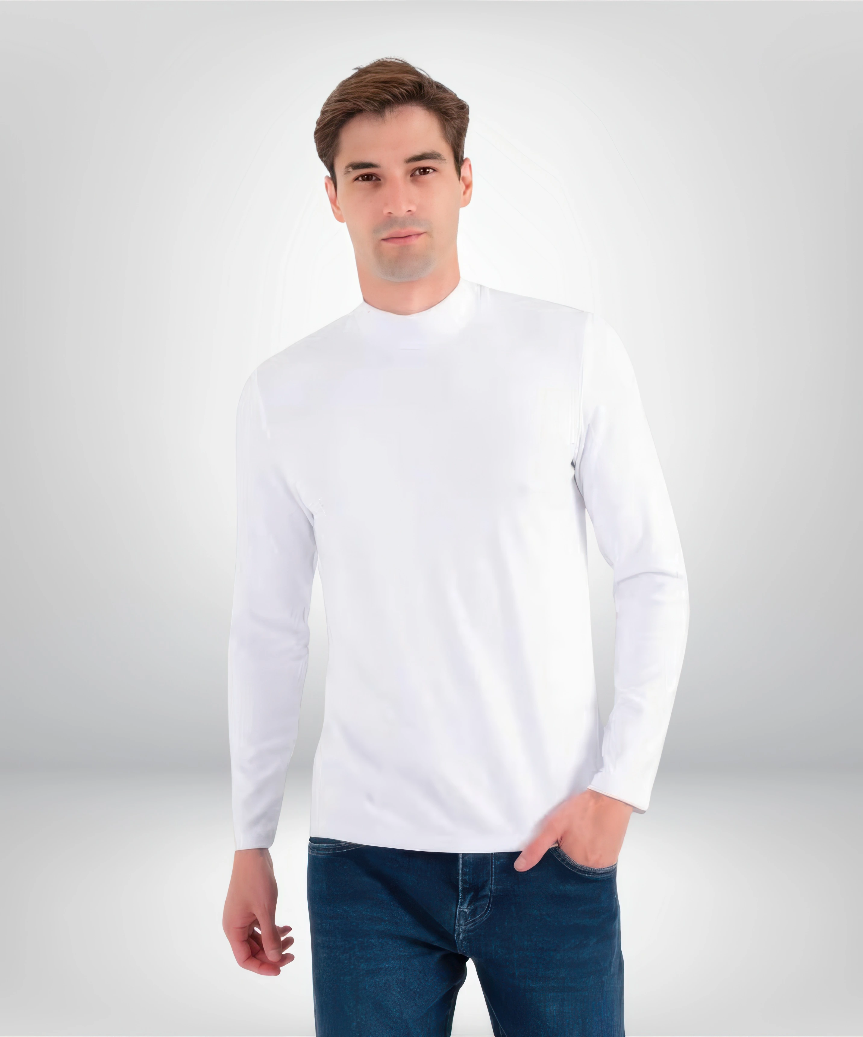 Yüksek kaliteli pamuklu ribana kumaştan üretilmiş, yarım boğazlı, uzun kollu konforlu badi.