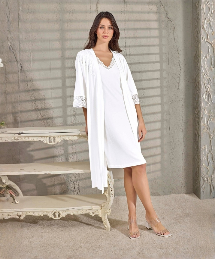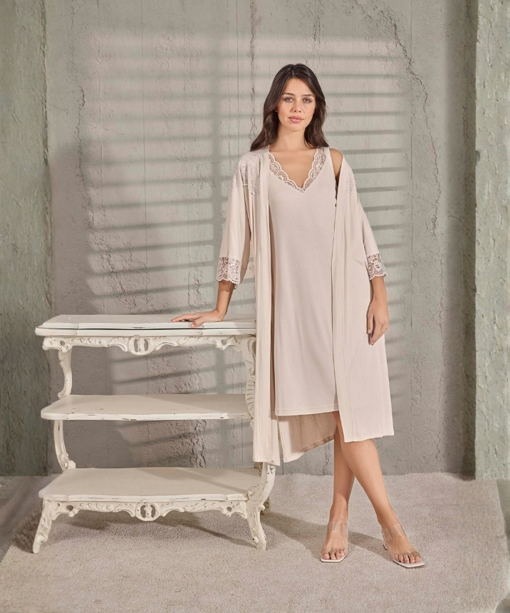 Sabahlık ve pijama konforunu birleştiren, yumuşak dokulu, zarif 2'li set.