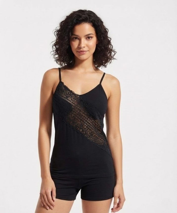 Likralı Göğüs Dantelli Atlet