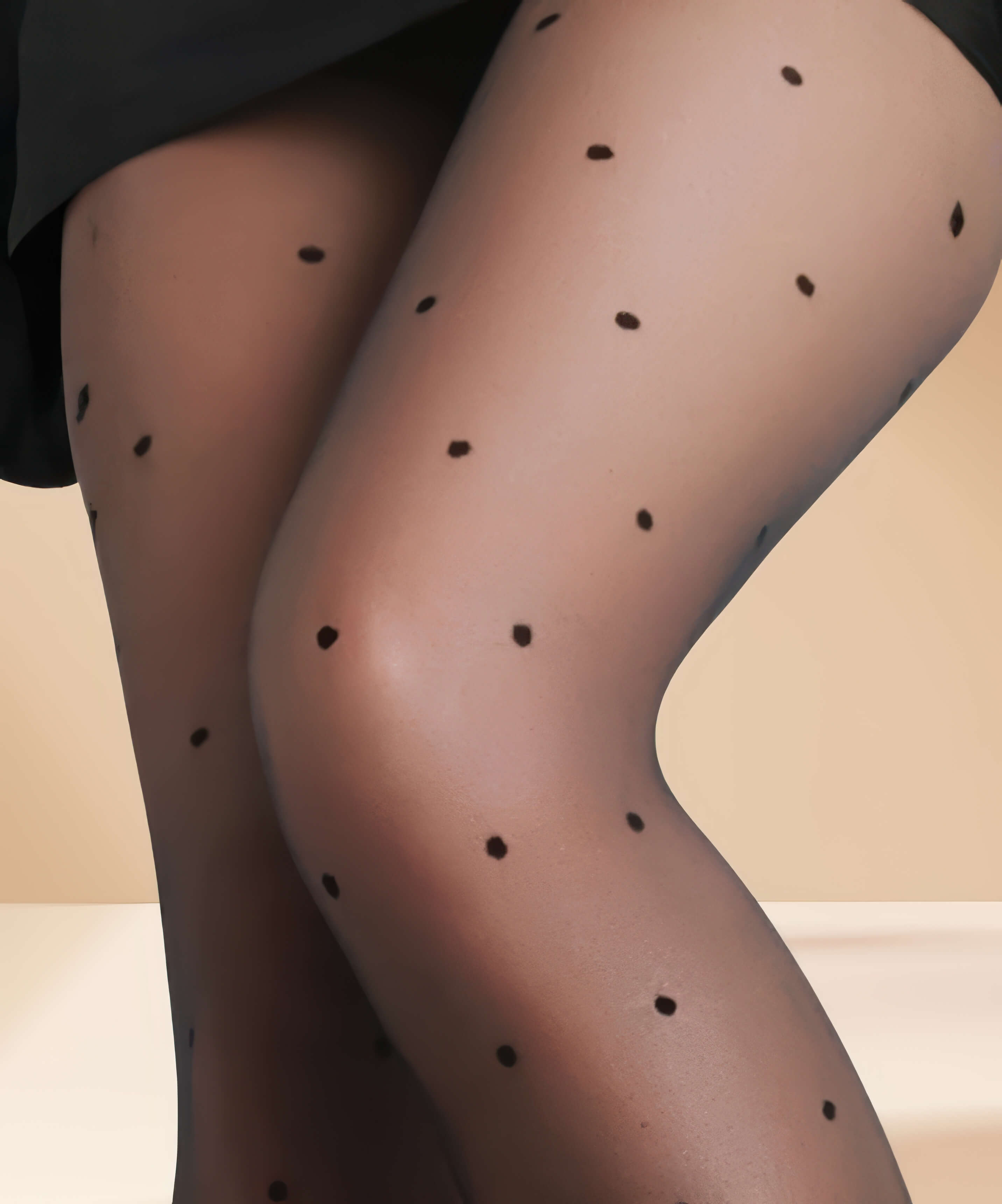 Şıklığınıza hareket katacak, küçük puantiye detaylı, rahat kesim külotlu çorap.