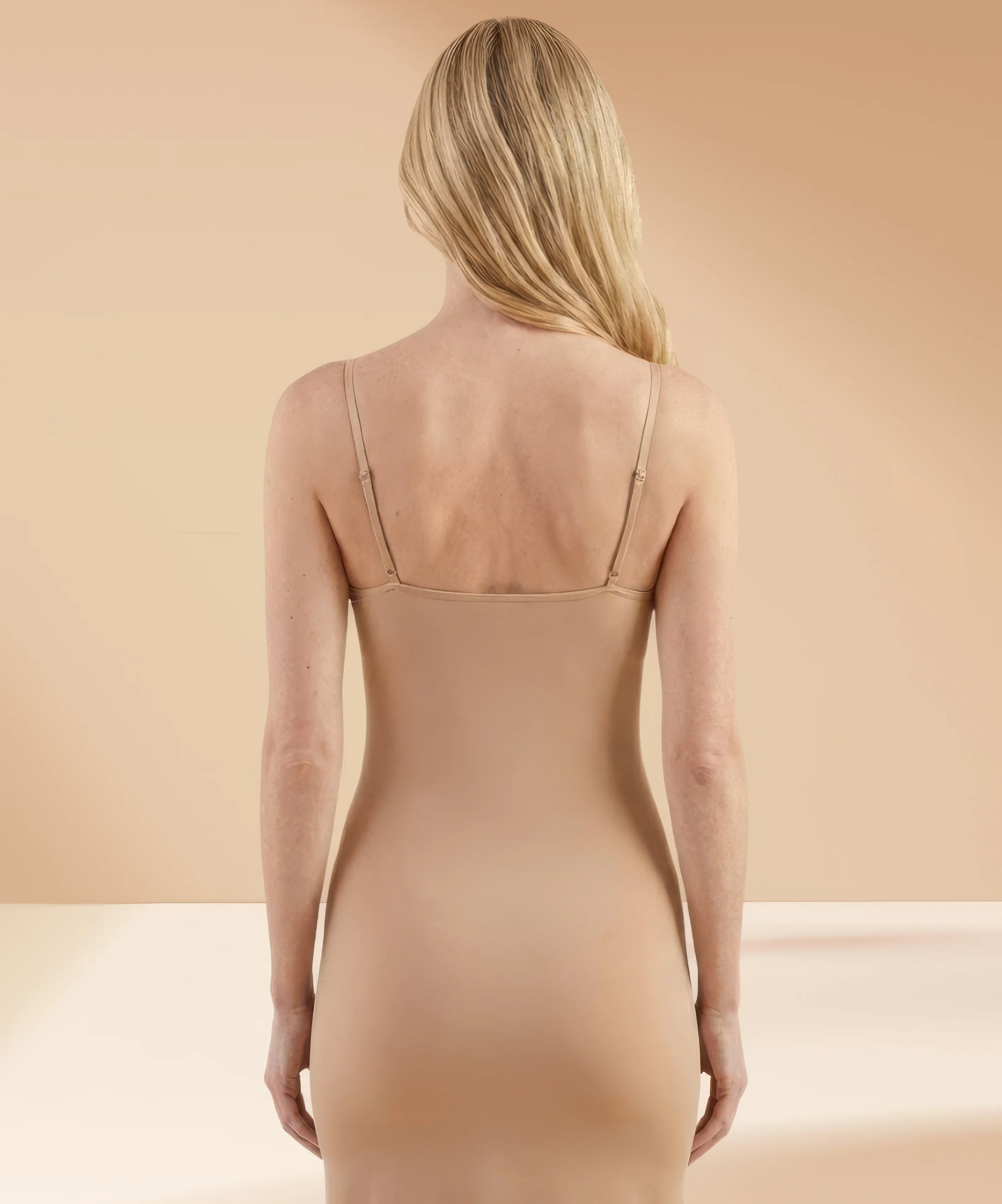 Elbiselerin altında kayganlık sağlayarak elektriklenmeyi önleyen, ayarlanabilir ince askılı, uzun ve zarif kombinezon.